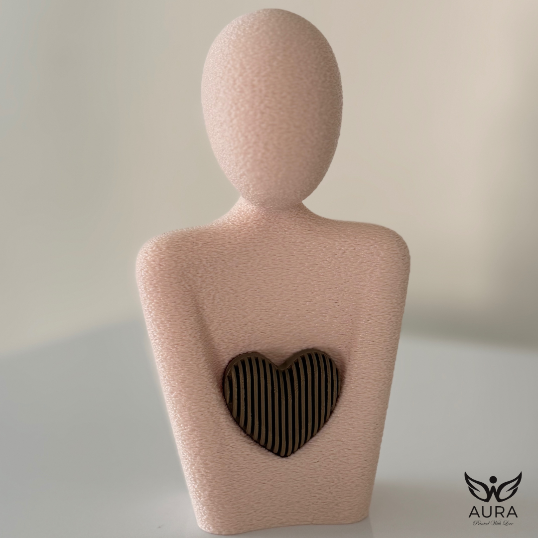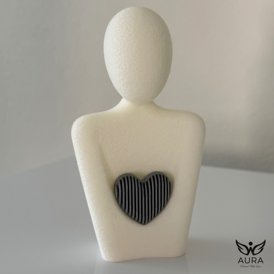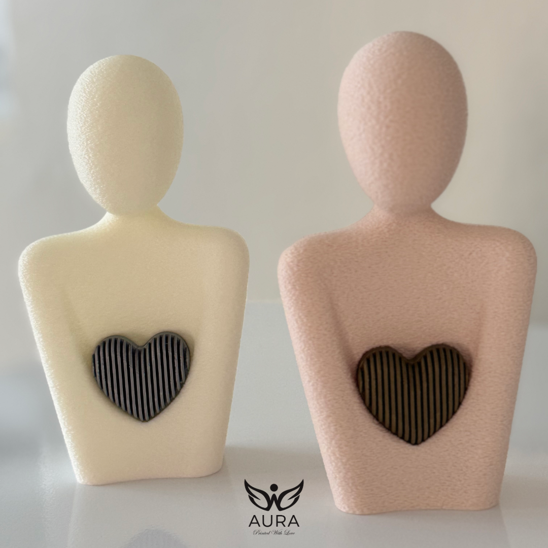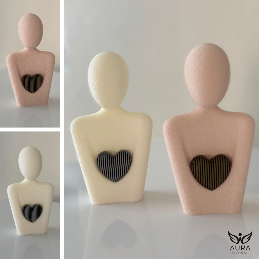 Pieza creada para honrar el amor más puro: el amor maternal. Cada figura está impresa con textura suave y un corazón metálico —plata o bronce— que simboliza la luz, la fuerza y la ternura que solo una madre puede ofrecer. Su diseño minimalista y su presencia serena la convierten en un detalle perfecto para regalar, decorar o conservar como recordatorio de ese vínculo que sostiene y acompaña.