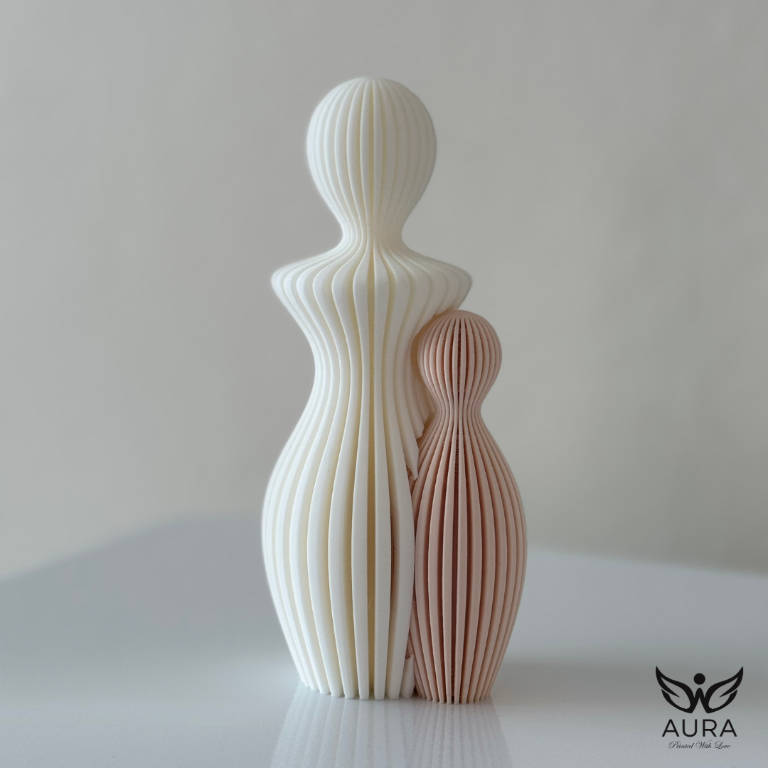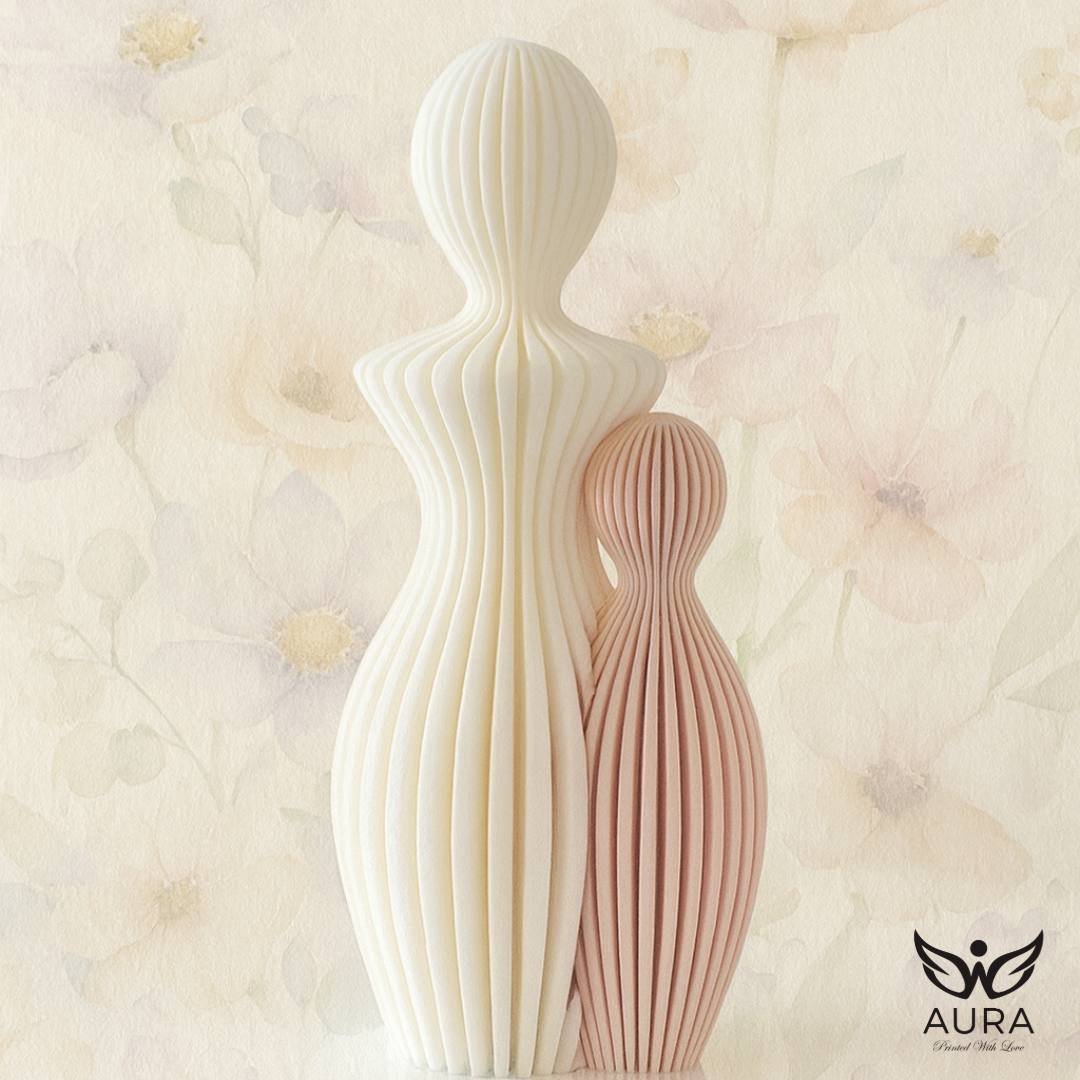 Esta escultura minimalista representa a una madre y a su hijo en un abrazo silencioso, lleno de protección y ternura. Sus líneas suaves y su textura acanalada evocan calma, conexión y presencia, un recordatorio de que el amor más profundo se expresa en los gestos más simples. Diseñada para espacios que buscan armonía y significado, esta pieza aporta serenidad a cualquier rincón del hogar.